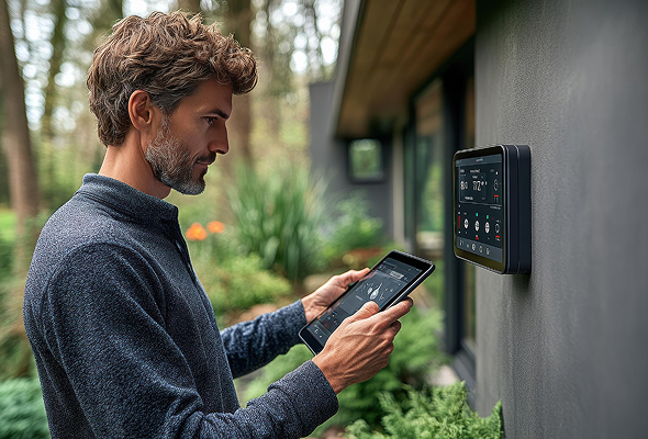 Comprehensive smart home electrical setup with automated lighting, security, and energy management.
